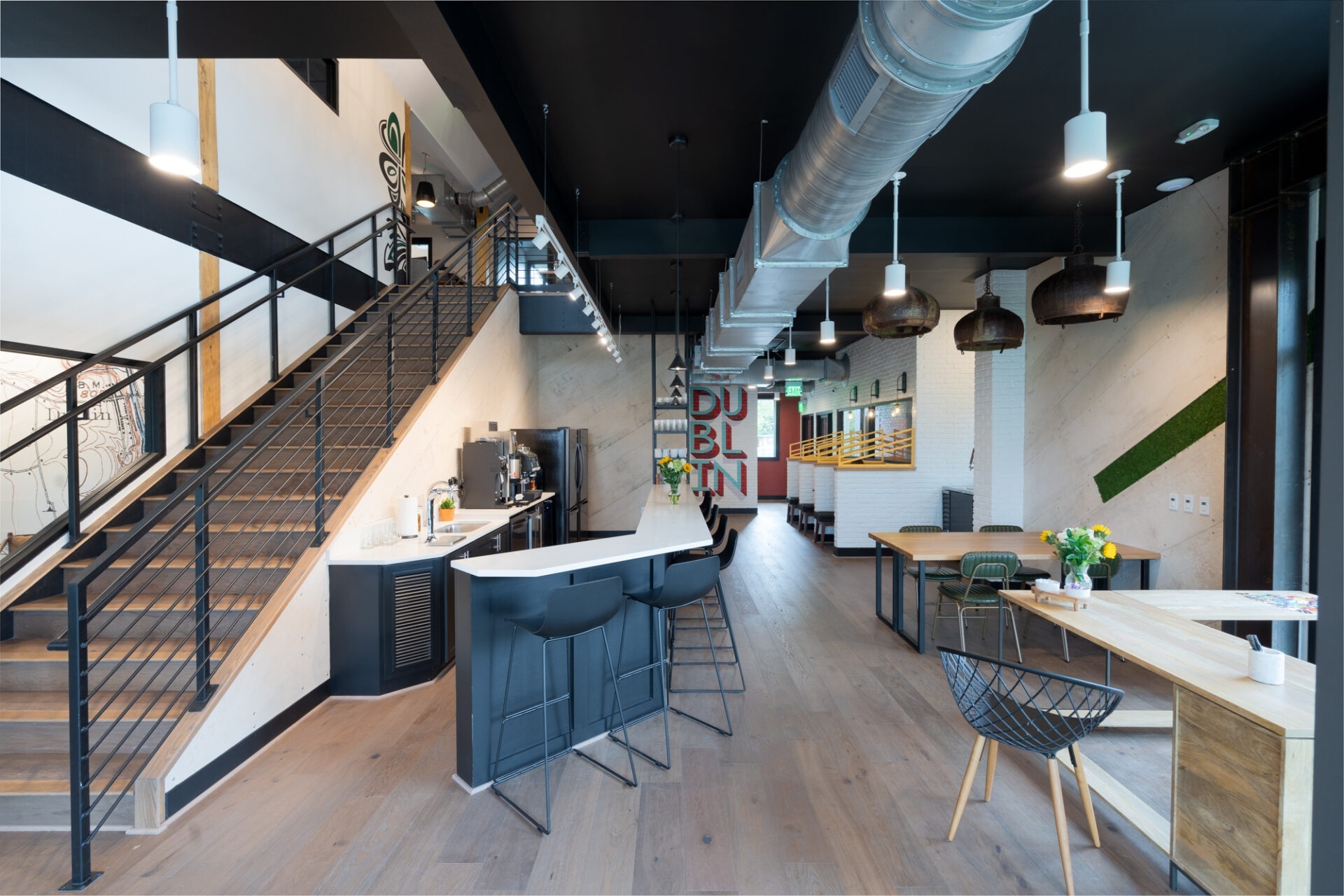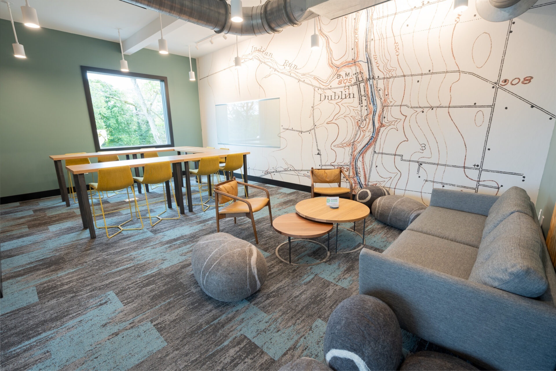 Dublin, soon to be Riverview Village, is the perfect place to cowork, meet, or host an event! This location is headquarters to the team and is part of a larger development that will include the re-development of surrounding buildings to include more coworking space, more conference room and event space, as well as local restaurant and bar concepts!