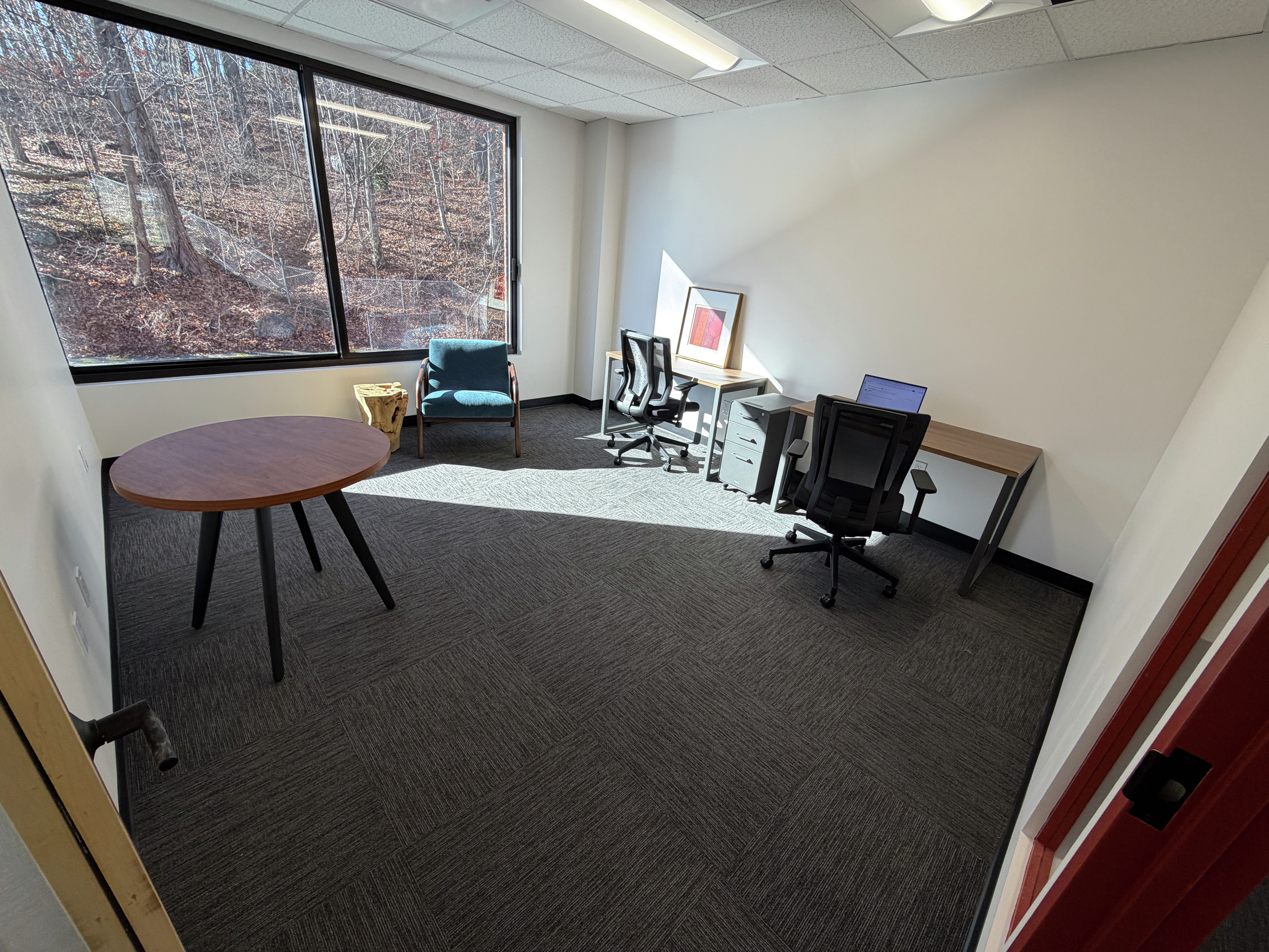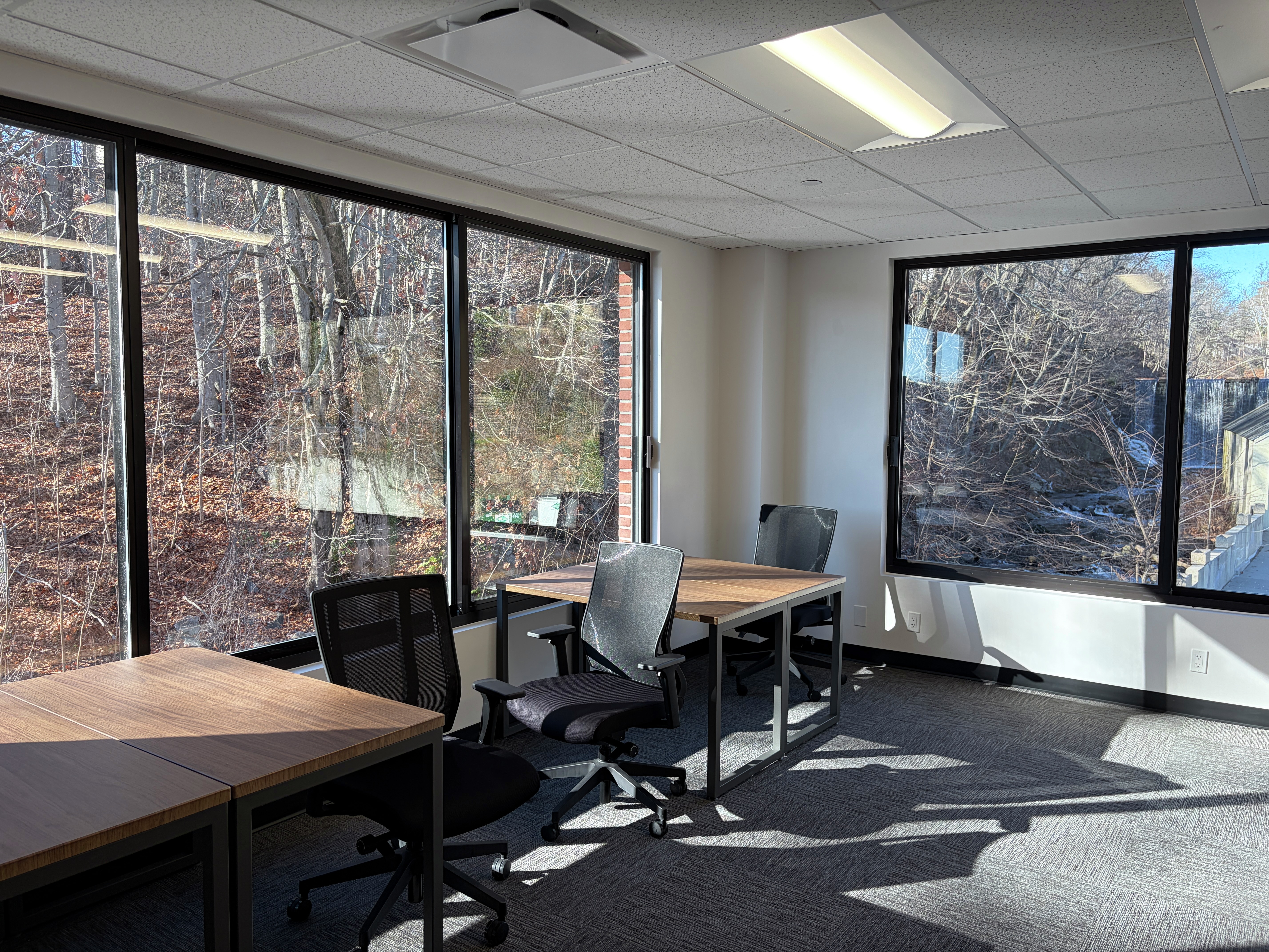 We offer 20,000 sq. ft. of professional office space for rent on Pemberwick Road. With 74 private offices, one conference room, a stylish café, and secure 24/7 access, you’ll get the privacy and flexibility to work on your own terms. Our flexible office rentals range from solo suites to six-person team spaces, all thoughtfully designed for focus and convenience. Each office comes with high-speed Wi-Fi and access to shared amenities, and is located in a serene riverside building featuring a waterfall and internal skybridge. We’re just five minutes from Greenwich Avenue and minutes from Merritt Parkway, I-95, and a nearby airport. With plenty of parking and an in-house gym, we deliver comfort, convenience, and professionalism all in one. If you’re ready for a space that helps your business grow, we’re ready for you.