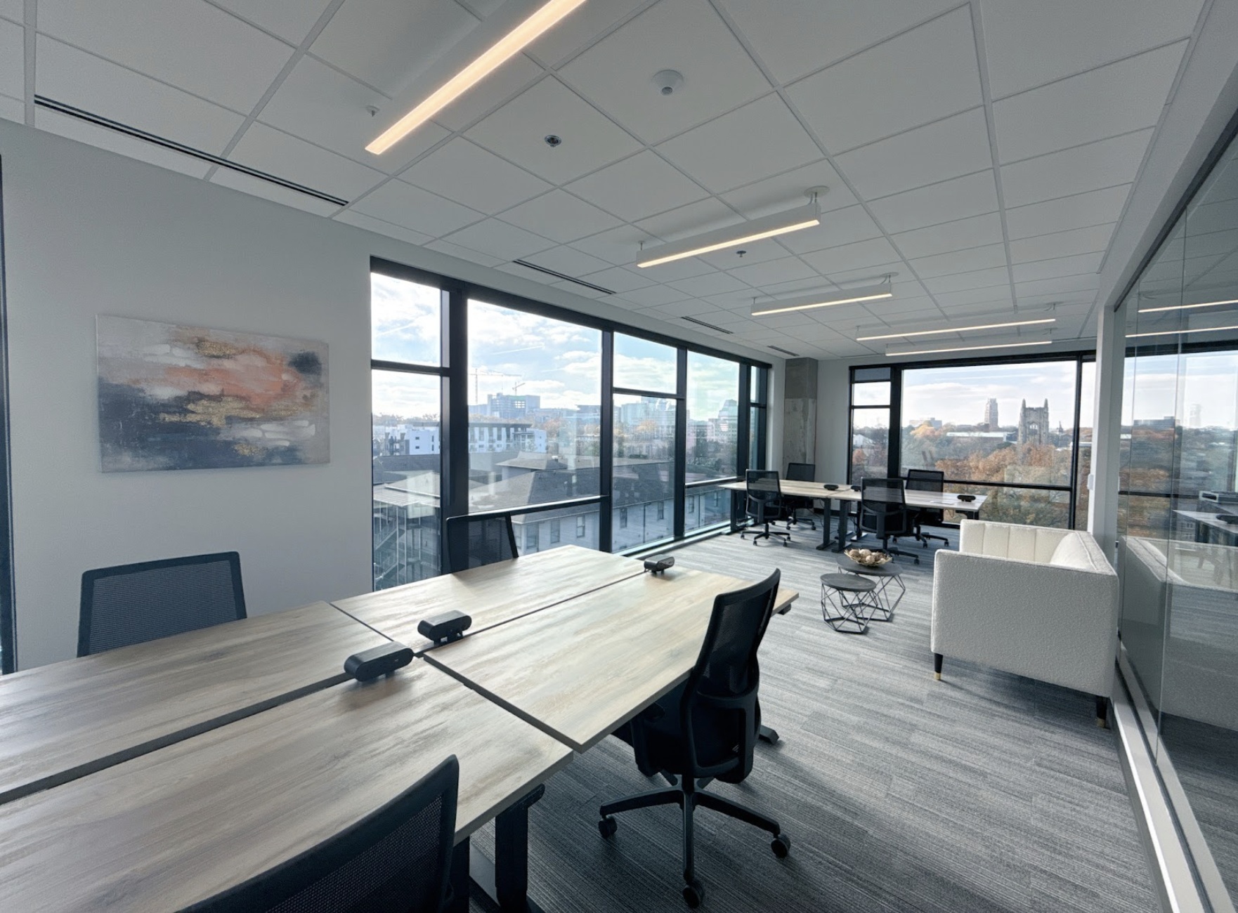 Experience premier workspace at Music Row, steps from Nashville’s Gulch and Midtown. This 35,000 sq. ft. facility offers 90+ private offices, modern coworking areas, and fully equipped meeting rooms! Located atop the Class A 17th & Grand property, it features stunning skyline views, a rooftop space, and expansive windows. Members enjoy high-speed Wi-Fi, convenient parking, a stocked café, free printing, an IT help desk, and an onsite gym.