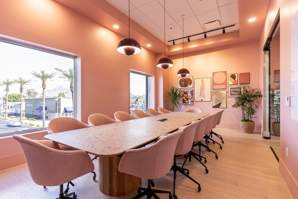 Phoenix – Biltmore is a boutique flexible coworking space designed to gather and inspire the brightest minds. This coworking space offers flexibility to empower teams of all sizes, from 1 to 100. The fully furnished and handcrafted environment features unique gathering spaces, event areas, a fitness room, A/V-equipped conference rooms, an audio recording studio, refresh rooms, and a dynamic and thriving community supported by a robust calendar of networking and wellness events. Nestled off Camelback in the heart of the iconic Biltmore area, this space provides unprecedented access to dining, shopping, and entertainment.