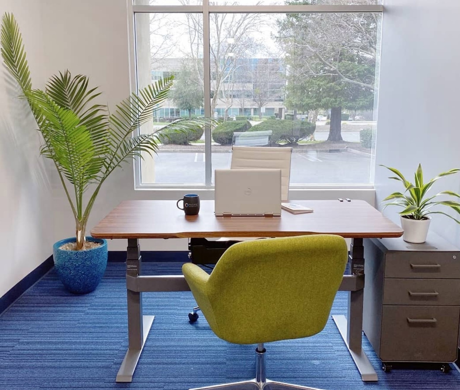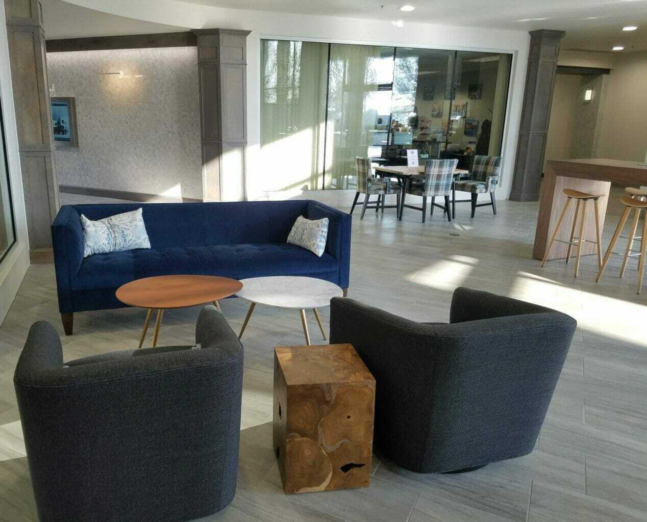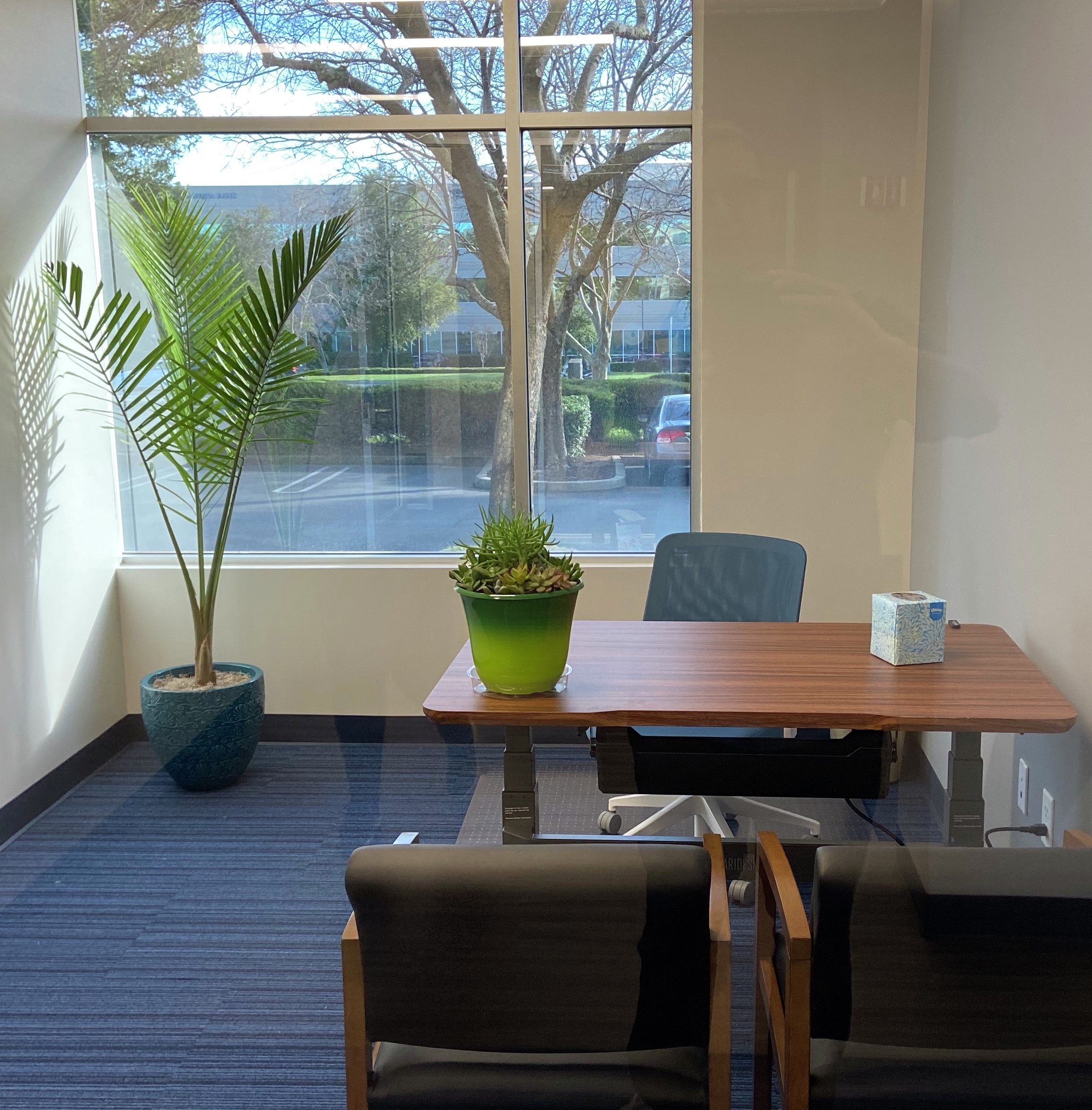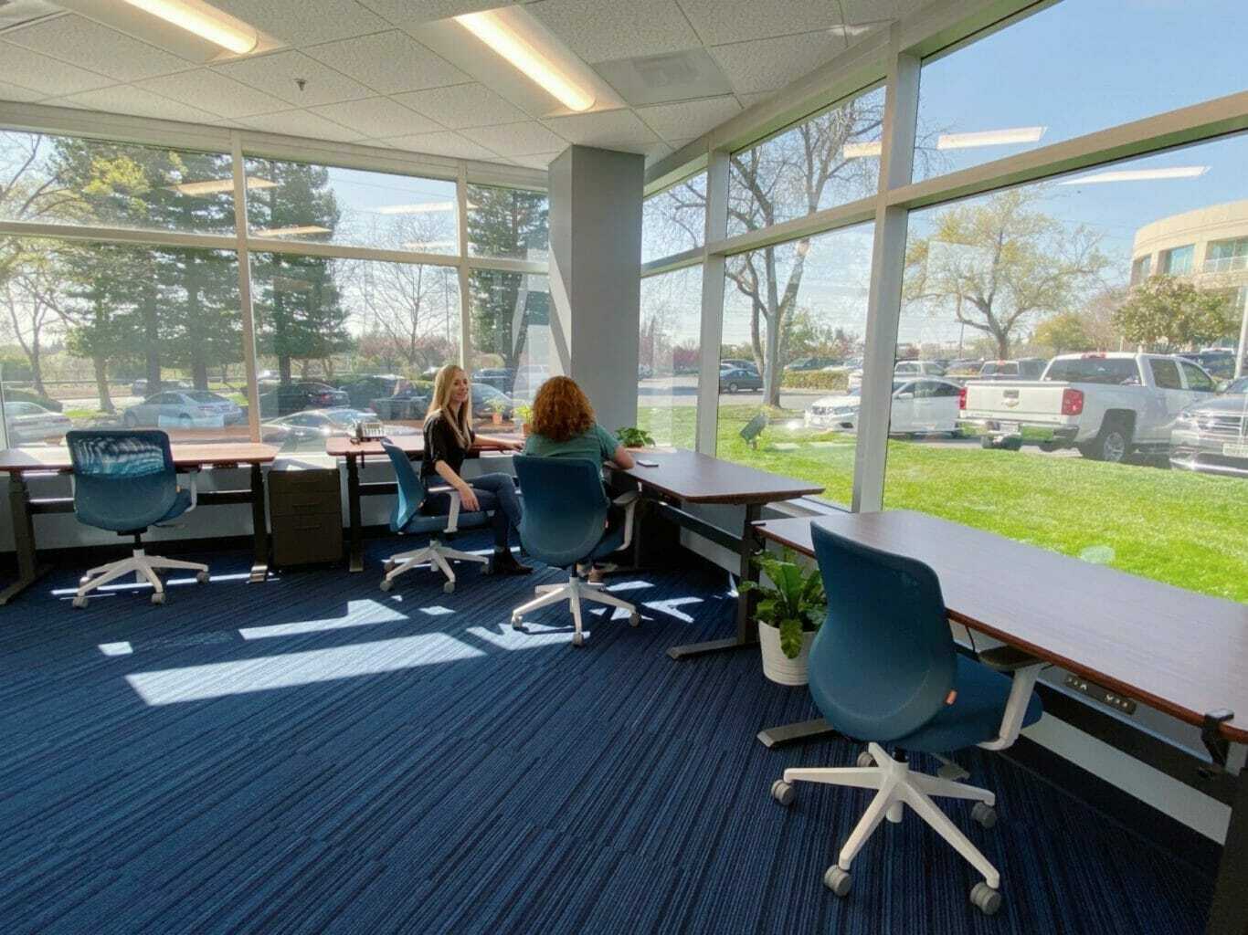 The Roseville business center in Roseville, California is located right off I-80, 30 minutes from the Sacramento International Airport and a few miles away from the Roseville Amtrak station. The center features a relaxing tree-lined view, surrounded by restaurants, hotels, and shopping. A fitness center is on site.