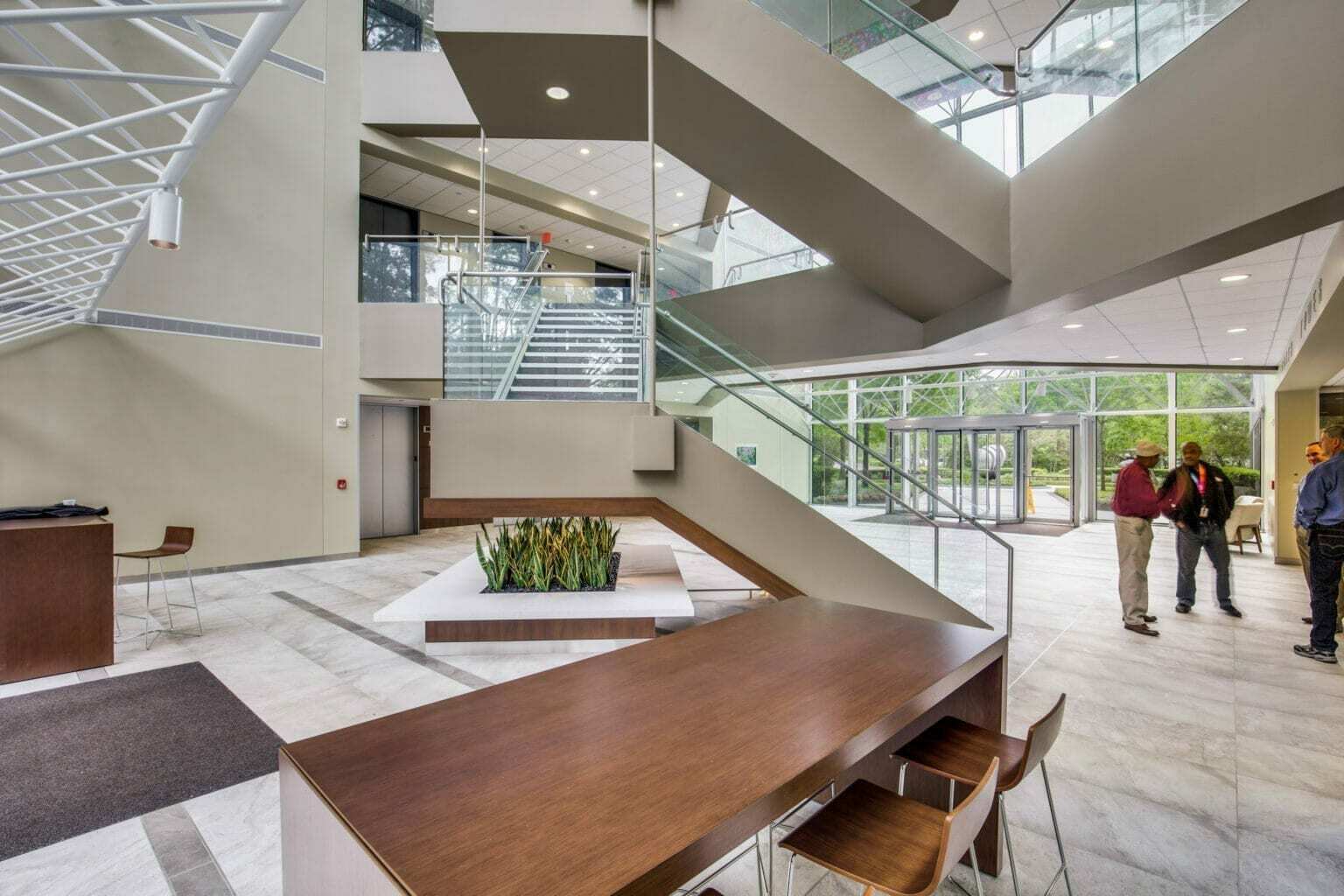 The Woodlands – Timberloch Place business center in The Woodlands, Texas might be the most beautiful office space in the Houston metro area. These surprisingly affordable offices are meticulously designed not just to be impressive looking, but no detail has been overlooked to create offices and coworking spaces designed for privacy, productivity and professionality. Available furnished or unfurnished, these turnkey offices are move-in ready with no long-term lease commitment and minimal upfront capital. Always ideal for teams of 1-10 people, more and more larger teams and Fortune 500 companies are choosing the flexibility of shared offices and executive suites for teams of 10-50 people. The Woodlands occupies the top floor of a newly renovated Class A office tower and boasts six conference rooms three team rooms, a variety of coworking spaces, a full service coffee lounge, and the latest IT infrastructure. In addition to the beauty of the office space itself, the center is ideally located in the heart of The Woodlands at 2001 Timberloch Place, one block east of Grogan’s Mill Rd. Situated in an upscale quiet area with easy access and ample free parking, less than one mile from the bustling Woodlands Mall and Waterway Square and their myriad of shops and dining.